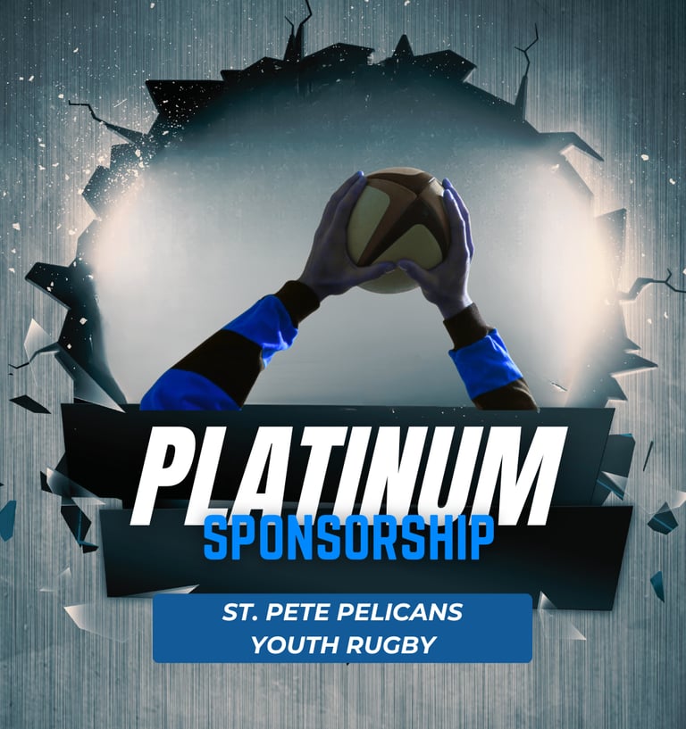 The St. Petersburg Pelican Youth Rugby Club, a 501(c)3 Non-Profit Organization, relies on sponsors that play a pivotal role in the club’s sustainability and growth, where we have gone from 3 kids to dozens of members and a state championship in only a few short years. Financial support helps to ensure the club has training facilities, equipment, jerseys, referees, tournament fees, and reimbursement for out of pocket expenses that our coaching staff incurs each and every season. Additionally, sponsors help ensure that many of our families in need can provide the gift of rugby to their children, a community and culture unlike any other. Each 100% tax deductible sponsorship, can be made simply by reviewing the sponsorship levels below and e-mailing us directly at admin@pelicanyouthrugby.com or contacting us directly on our Contact page.